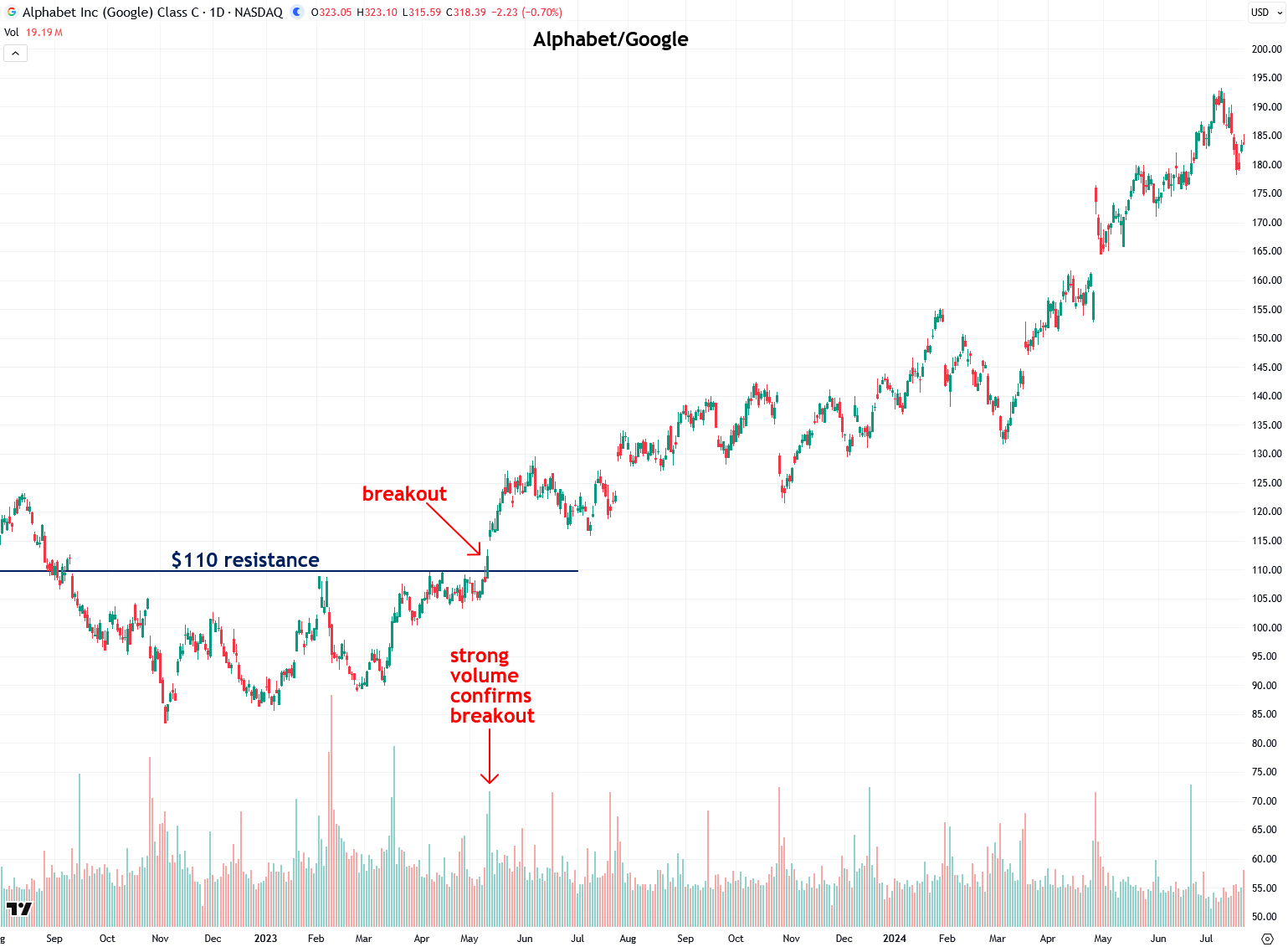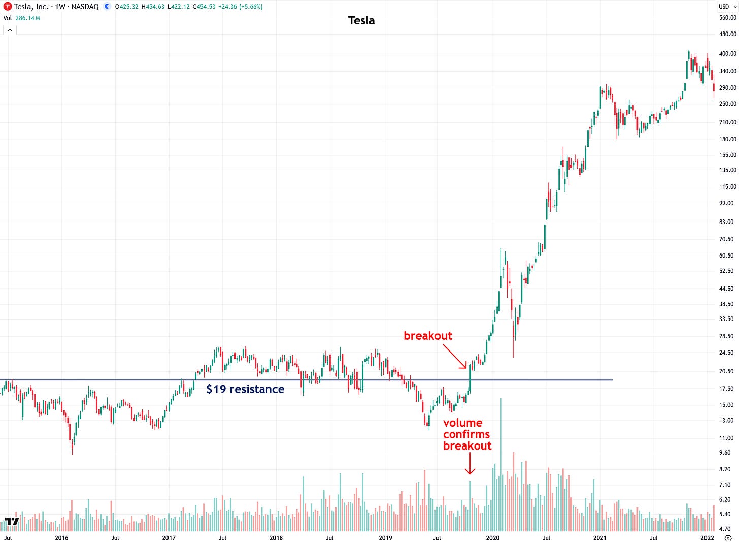 It’s helpful to see those two breakout attempts so close together: one that failed on low volume and another that succeeded on high volume, clearly illustrating the key lessons of this tutorial.