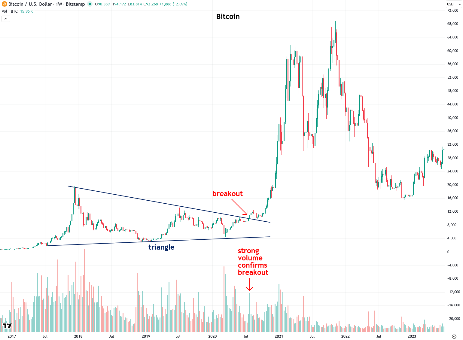 When Bitcoin broke out in July 2020 on heavy volume, it surged roughly sixfold from $10,000 to just above $60,000 in a matter of months!