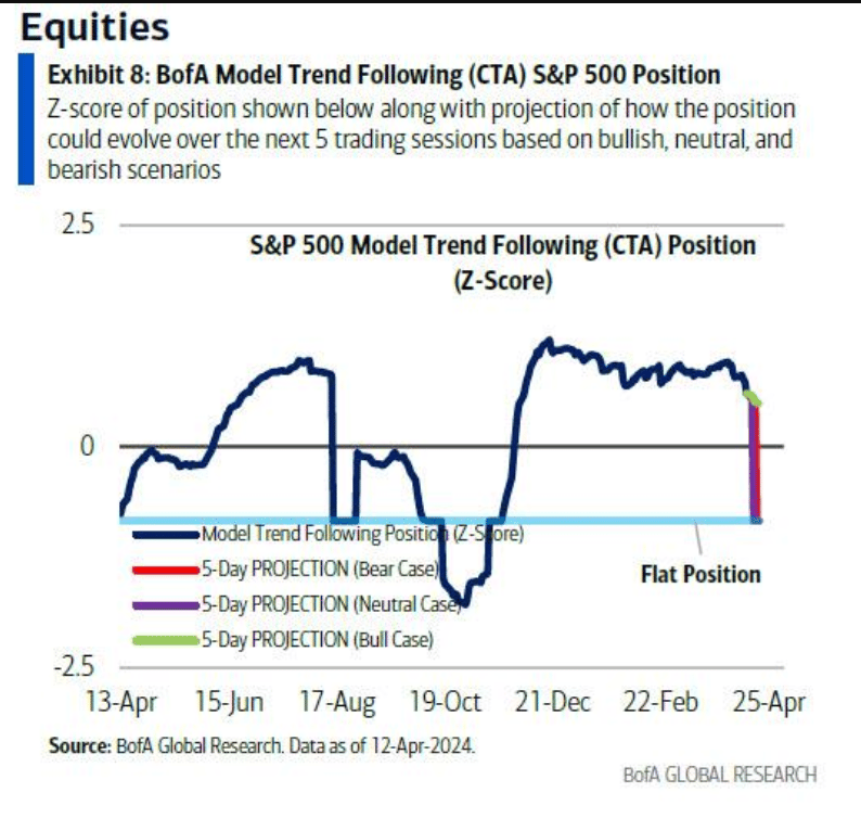 One other tail risk for US equities is CTA positioning, which has been rather elevated. A drawdown below SPX 5079 could cause a rather significant increase in selling pressure from these funds, according to BofA.
