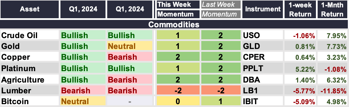 1 is our lowest positive momentum score, where buyers still enjoy a tactical advantage, but our conviction is not as high as momentum is not as strong and risks may exist.