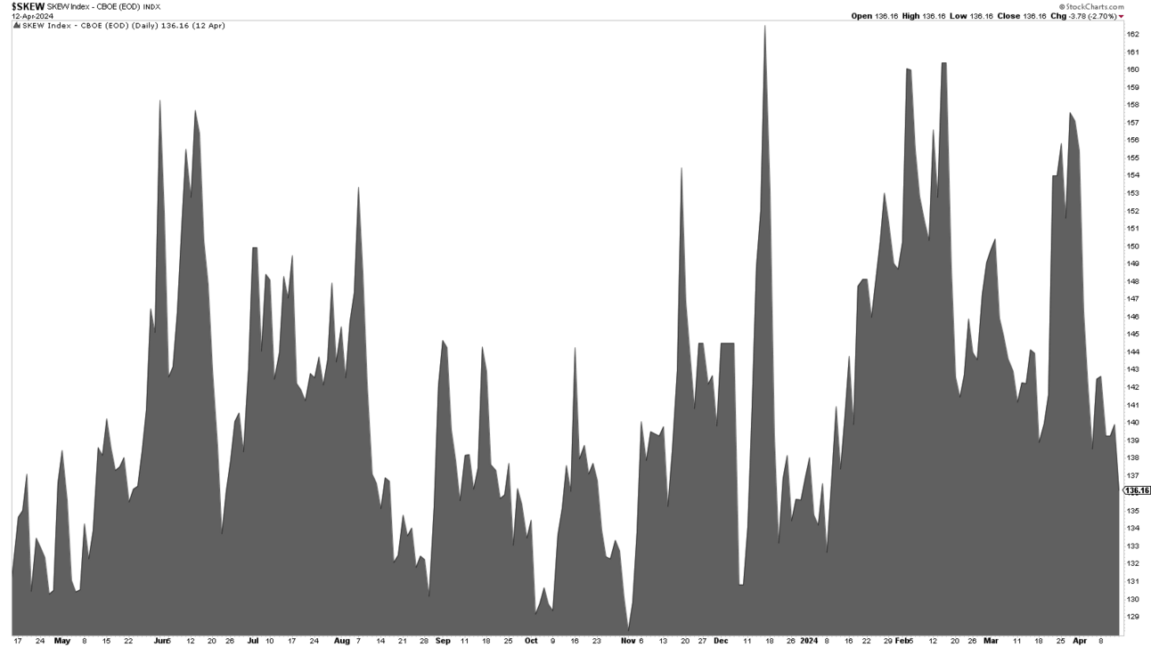 Skew still remains low, dropping from last week. Because we are in monthly options expiration week, the supportive Vanna and Charm flows that come from decaying SPX put options will be subdued as overall put exposure remains low.