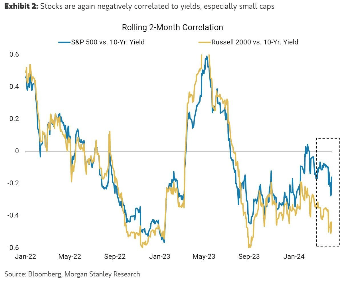 Concerns about inflation are driving rates higher to such an extent that equities cannot ignore them, particularly small caps, where about 40% of the Russell 2000 is unprofitable and then regional banks are also quite rate sensitive, particularly on the longer end.