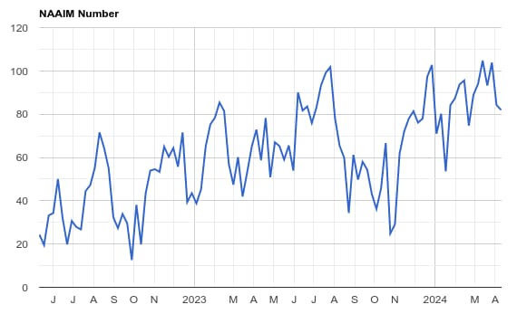 Last week money managers modestly decreased long positioning, but still remain quite long as of Thursday’s survey data. We imagine this changed on Friday and we could see more distribution of positioning in this week’s survey.