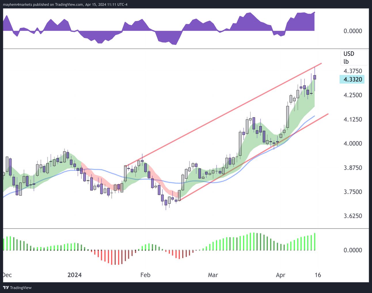 Supplies remain insufficient and exploration has been subdued for years, prompting any resurgence of demand to have the potential to push prices significantly higher, with $4.785 as a level we’re watching in the intermediate term as a potential supply zone that could offer resistance.