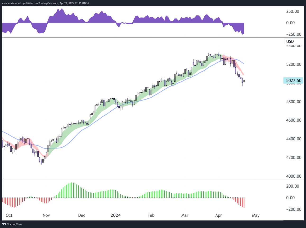 Last week marked a third straight week of losses in the S&P 500, which continues to show signs of negative momentum giving sellers the upper hand.