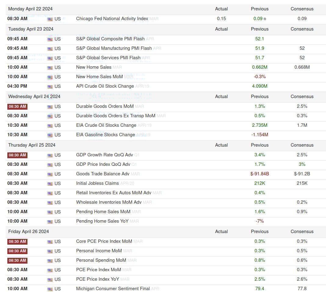 Key events include Durable Goods on Wednesday, GDP on Thursday and PCE on Friday. Any meaningful upside surprises could put further upside pressure on rates and downside pressure on equities. The opposite could be true of downside surprises as well.