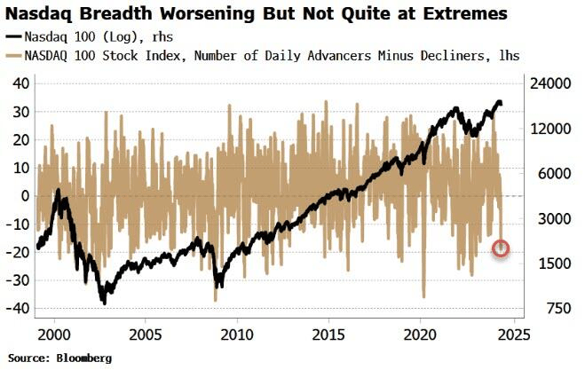We’ve yet to see extremes that suggest near-term exhaustion in multiple measures, including breadth. That tells us that we may not yet be through the worst of the downside pressure over the near to intermediate-term.
