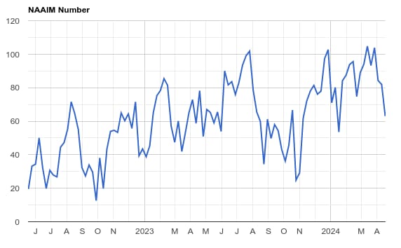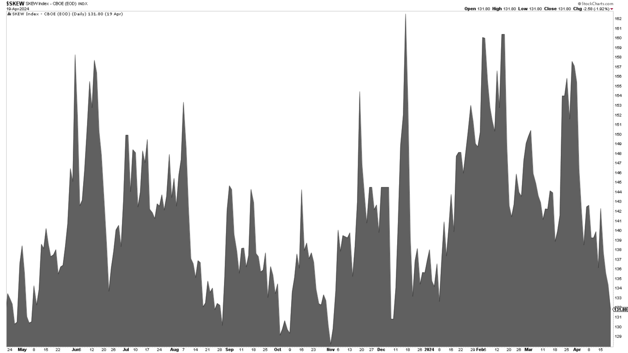 Positioning has lightened up considerably, but remains above its October-November lows of 2023 that marked an important turning point for the market after a corrective selling period.