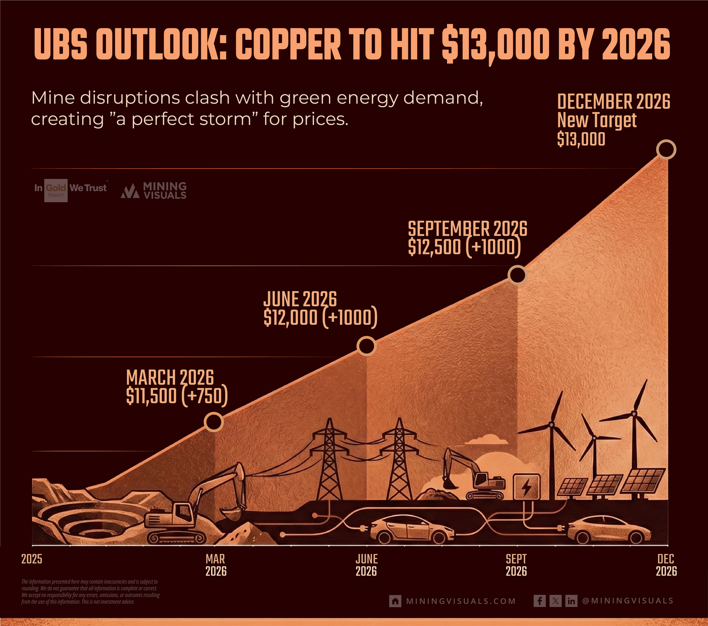 One of the recent bullish factors for copper came last week, when UBS raised its price forecast to $13,000 per tonne by December 2026, as shown in the infographic below from MiningVisuals: