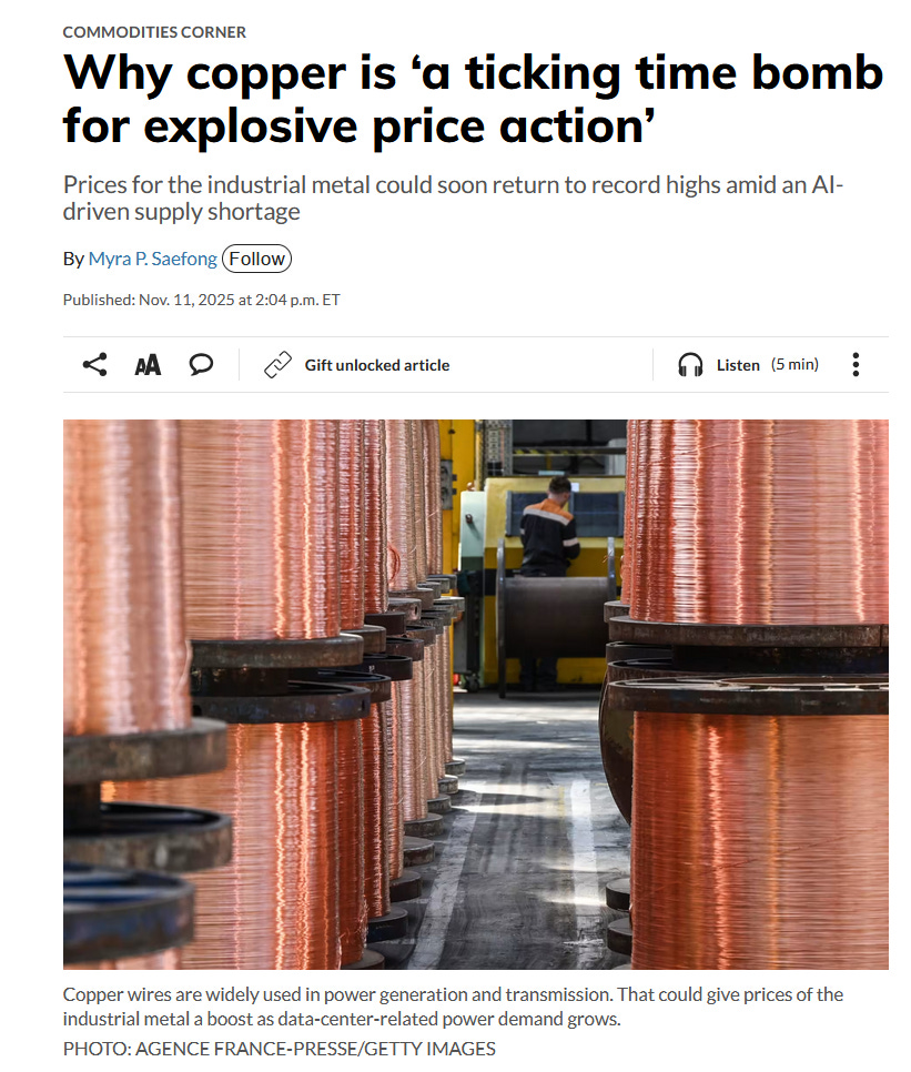 Copper’s recent rally has been driven by a series of positive catalysts. One of the most significant was a major disruption in early October at the Grasberg mine in Indonesia, which is the world’s second-largest source of copper, following a serious accident that Goldman Sachs referred to as a “black swan event.” Other bullish drivers include rising optimism around AI and electrification-related demand, growing expectations of U.S. interest rate cuts, and broad strength across the metals complex.